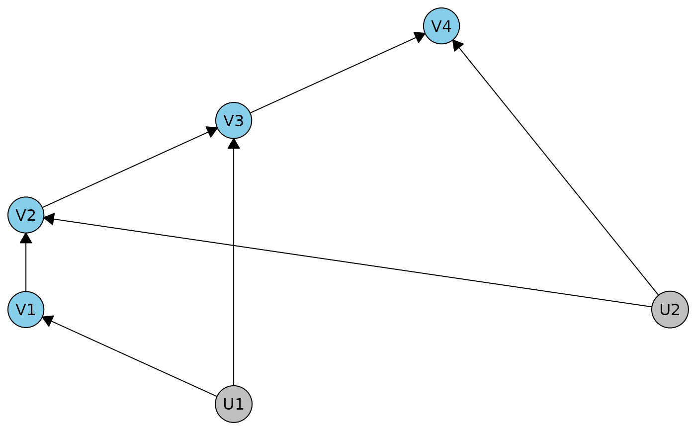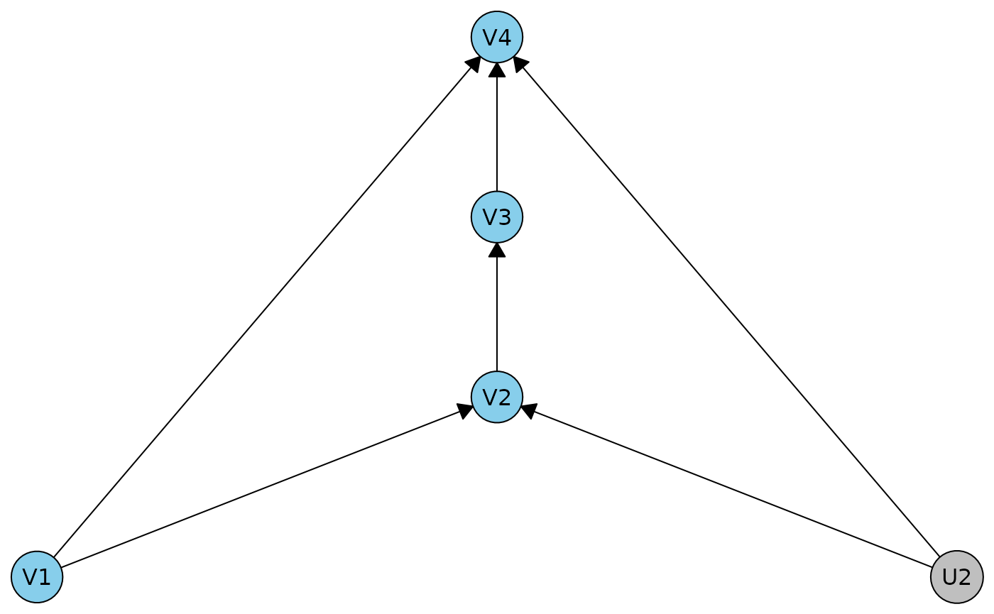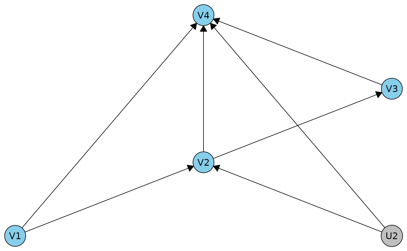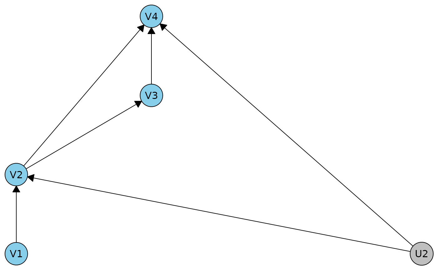 d1 <- dhvm(caugi(V1 %-->% V2, V2 %-->% V3, V3 %-->% V4, U1 %-->% V1+ V3, U2 %-->% V2 + V4))