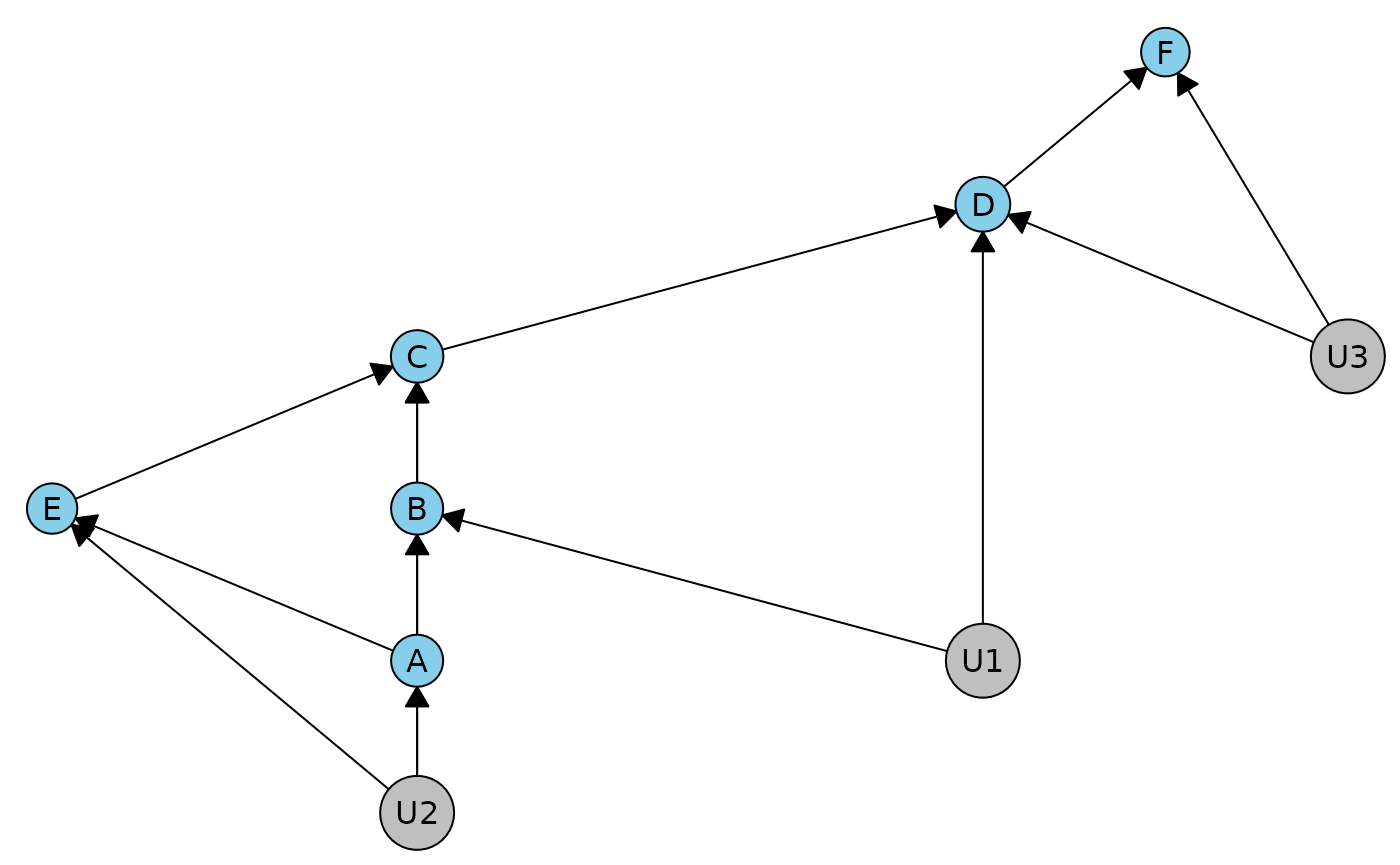 #> {A, C, E, U2[u]} with c-degree 1, {B, D, F, U1[u]} with c-degree 1