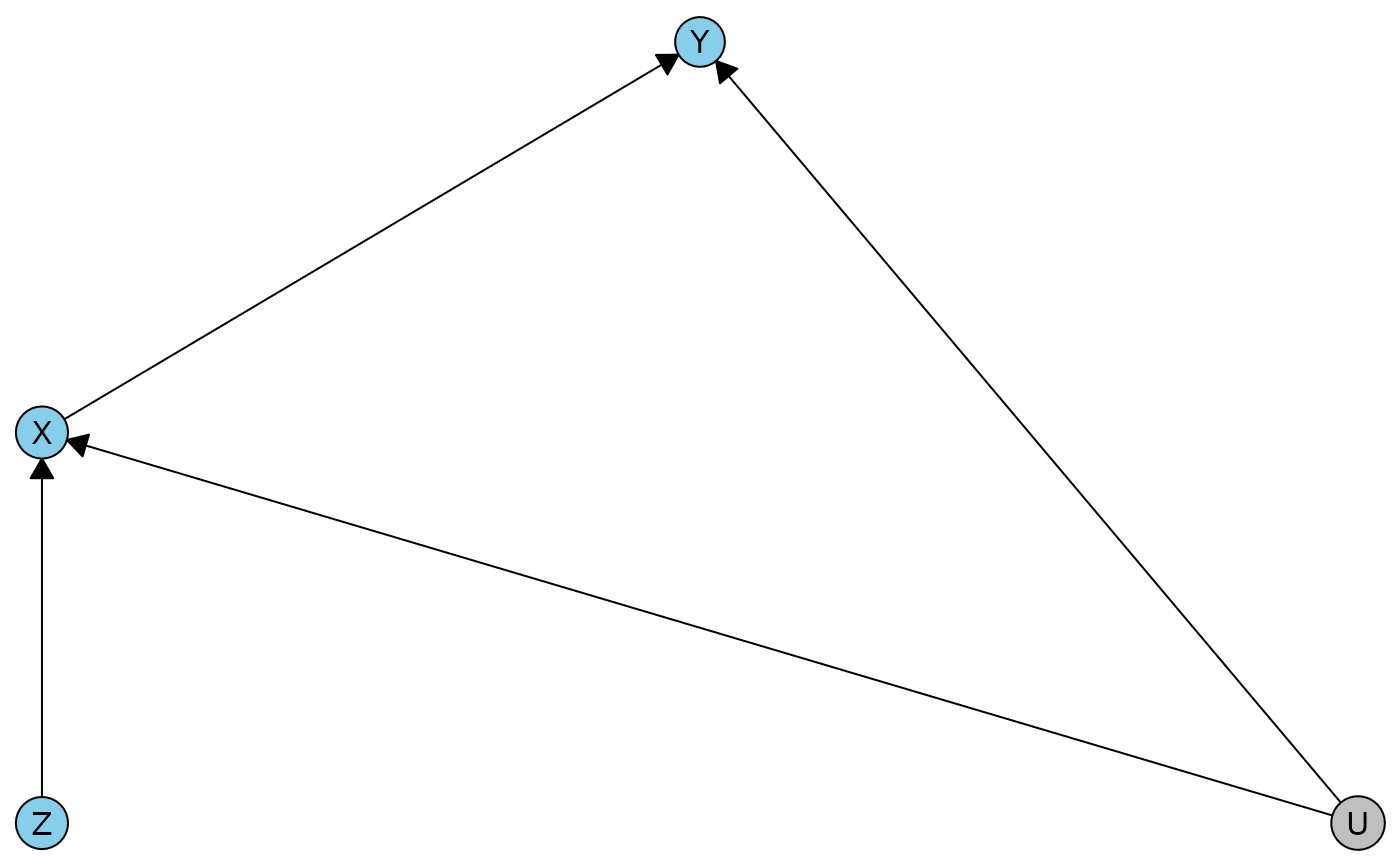 #> edges: Z-->X, X-->Y, U-->X, U-->Y